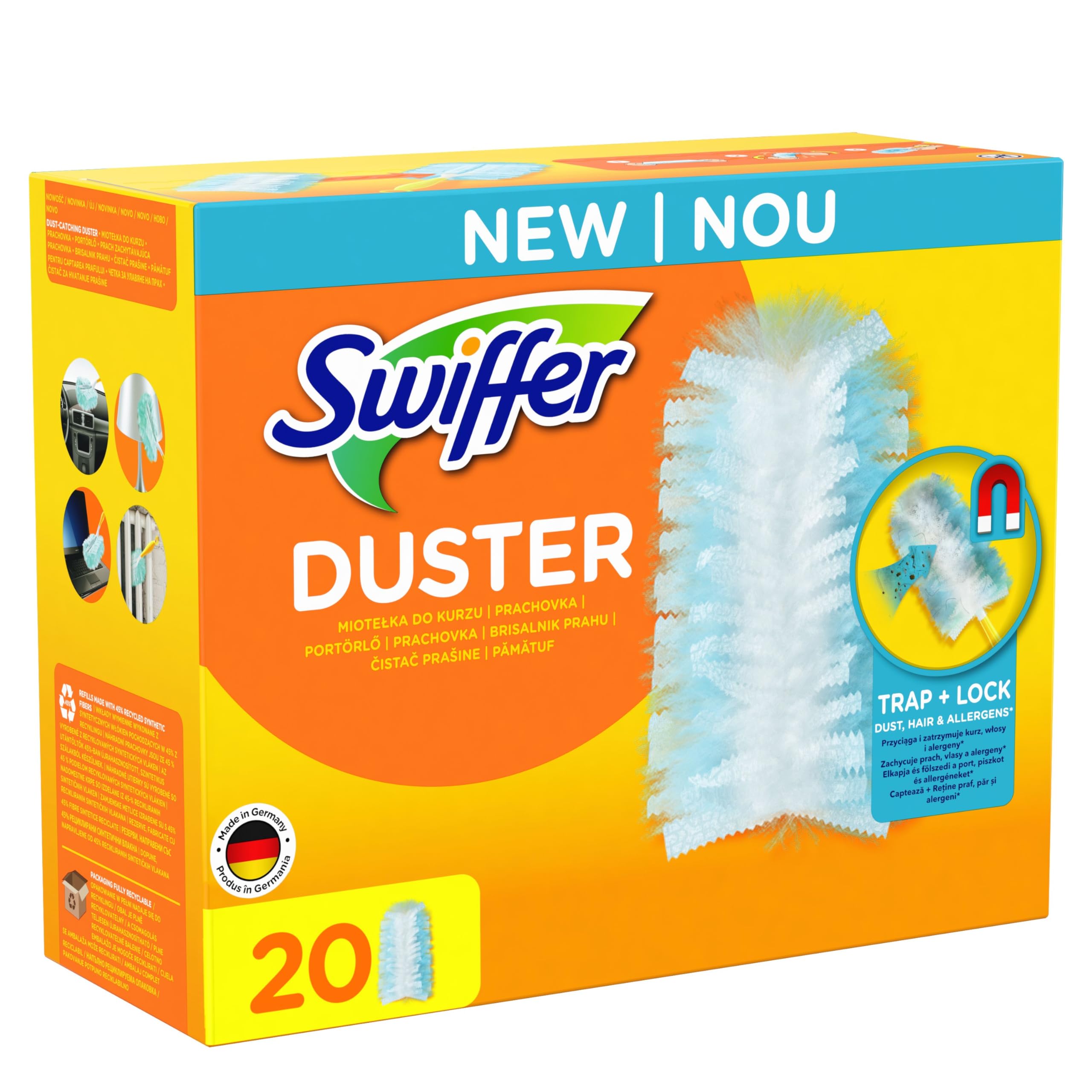 ![]() | Swiffer Miotełki do kurzu przyciągające i zatrzymujące kurz, wkłady wymienne 20 sztuk, przyciągają i zatrzymują nawet 3 razy więcej kurzu i włosów niż tradycyjna miotełka do sprzątania | 54 zł | B0CTTLH3V2 | 8006540785249 |