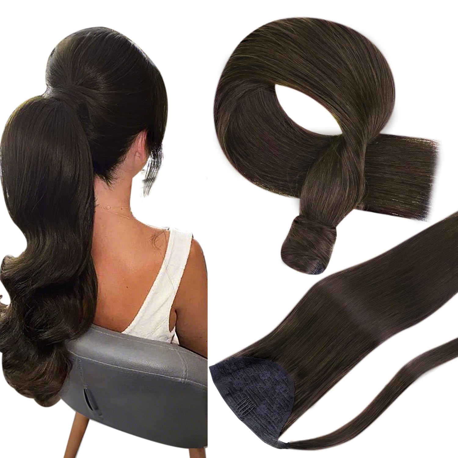 ![]() | Hetto doczepiany kucyk z prawdziwych, ludzkich włosów 40 cm #2 40 cm (1er Pack) # 2 najciemniejszy brąz. | 120 zł | B07VGFH5KD | 5907269207254 |