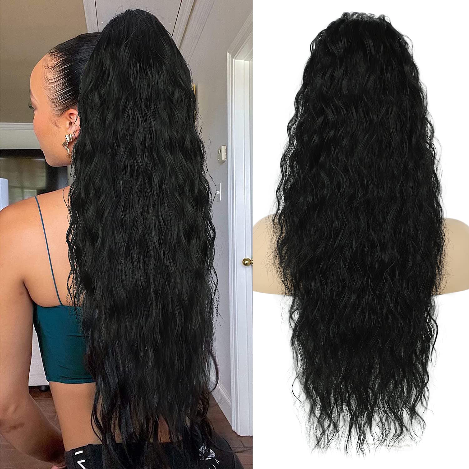 ![]() | Przedłużki do włosów z końskim ogonem, czarne, długie, owinięte, naturalne sztuczne włosy, przedłużenie włosów dla kobiet, afro, warkocz, kucyk, ok. 65 cm, 095A | 55 zł | B0BLYH5XG9 | 824381669195 |