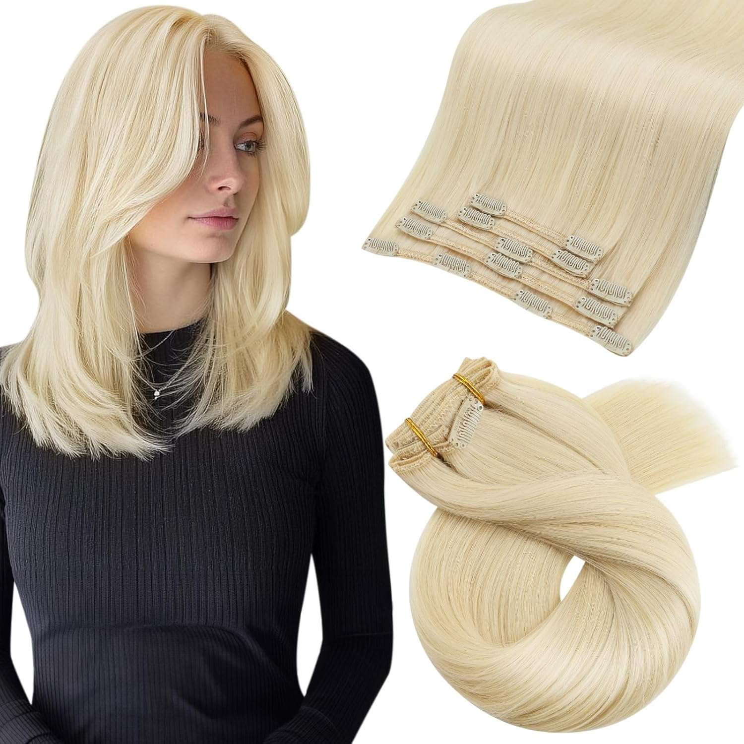 ![]() | Moresoo Blond Clip in Extensions Echthaar Remy Clip on Extensions Doppelt Tressen Extensions Echthaar Clip Platinblond Haarextension Clip in 80g 35 cm Glatt Dick Haare 5 Tressen #60 | 120 zł | B071X6WYR3 | 754047095665 |