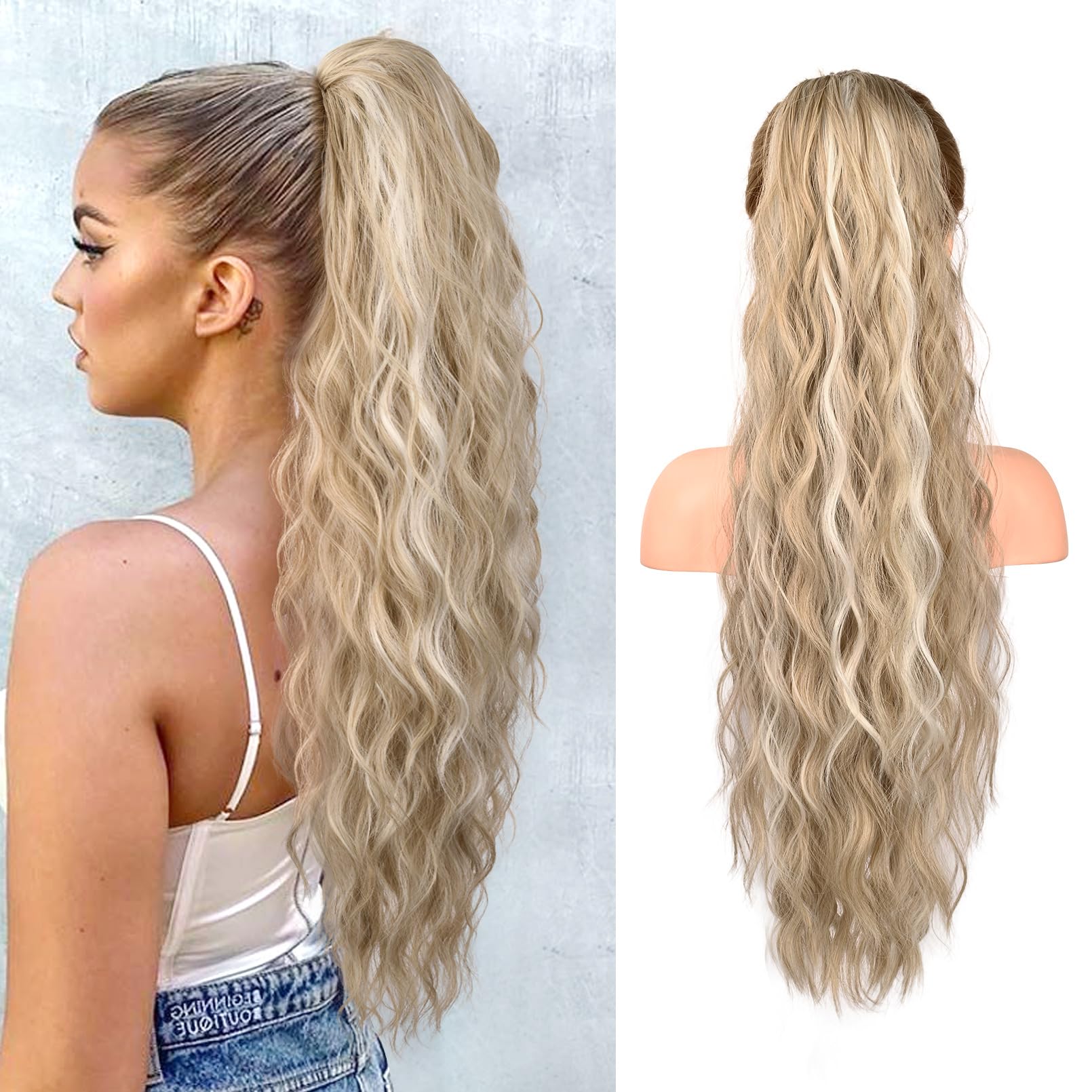 ![]() | REECHO Przedłużenie kucyka, długość 66 cm, falowane przedłużenie włosów, koński ogon, syntetyczny koński ogon, treska dla kobiet – popielaty blond z pasemkami | 58 zł | B0C8T48DYL | 5901985263235 |